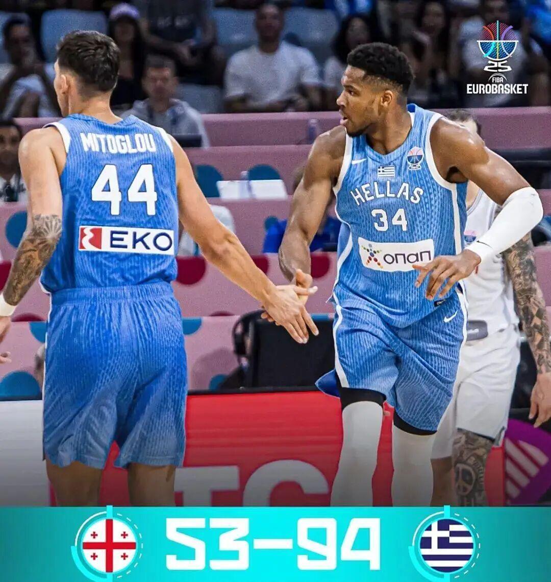 就在昨晚,希腊再度94-53狂胜格鲁吉亚