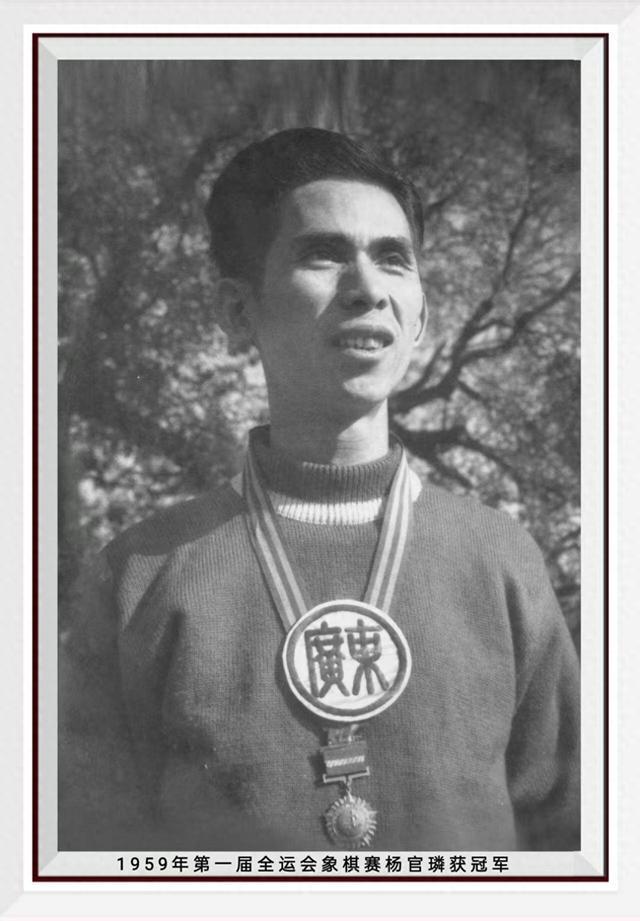 1959年第一届全运会在北京举行,杨官璘获冠军,时年34岁。(他也是在1956年全国象棋锦标赛上获得的第一个全国冠军)